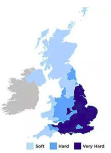 下図のとおり、イングランドは硬水優勢の土地柄、ウェ―ルズ、スコットランド、北アイルランドは柔らかめ。